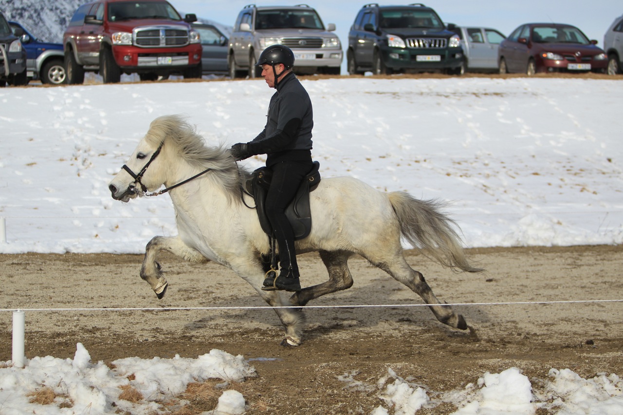 Til gamans má geta að við kepptum 12 sinnum á hestum úr okkar ræktun Ketilsstaðir/Syðri Gegnishólar. Komum því að jafnaði fram tvo hesta í hverri grein, nema í gæðingaskeiði, þá var aðeins eitt hross( reyndar er ég einn af ræktendunum af Elliða frá Fosshofi, þó ég telji hann ekki með). Í skeiðinu vorum við lika bara með eitt hross og einnig í skeiðinu í gegnum reiðhöllini. Af þessum 12 skiptum náðu þessi hross í 8 verðlauna sæti. Við erum mjög sátt með þennan árángur, en auðvitað er mjög gaman þegar hrossin sem maður ræktar stimpla sig inn í keppni en það hefur verið okkar stefna að koma þeim á framfæri í keppni. Þetta er svona prófsteinn fyrir okkur að við séum á réttri leið í ræktun. Við skulum ekki gleyma að í meistaradeildinni í ár var öllu tjaldað enda eina leiðin fyrir menn að komast á blað. Sjaldan hafa sést vígalegri ráslistar, hestar, knapar, áhorfendur, framkvæmdanefnd og dómarar. Ekki að gleyma Thelmu Tómasson og Stöð 2, né Óla Pétri og öðrum starfsmönnum. Hafið þökk fyrir frábæran vetur í alla staði. Svo viljum við auðvitað þakka Bjarna á Þóröddsstöðum, Elvari á Skörðugili, Krissu og Agnari á Jaðri og Hafliða í Ármóti kærlega fyrir hestlánið, það er gott að eiga góða að. Birti hér eitthvað af myndum sem við erum ýmist búin að sníkja og stela hér og þar.