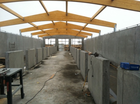 Nú er búið að setja sperrurnar á hesthúsið og óhætt að segja að framkvæmdir gangi vel. Við erum spennt og hlökkum til að taka nýju húsin í notkun. Svona lítur þetta út núna, en næst er að setja ýleiningarnar á þakið.