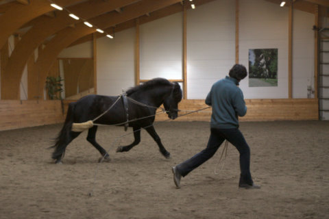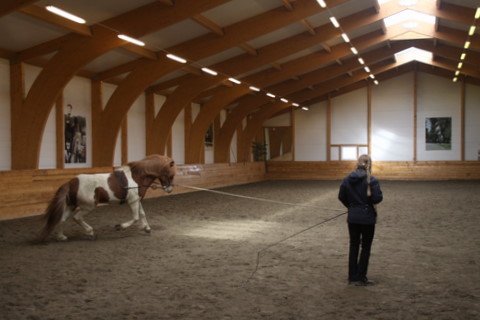Það var að ljúka hjá okkur námskeið með Julio Borba, að venju var það fræðandi og skemmtilegt. Það er hægt að bæta endalaust, við erum alltaf að fá punkta, eitthvað sem virðist svo lítið en er samt mikilvægt. Í þetta sinn lögðum við áherslu á taumhringsvinnu á siðari hluta námskeiðsins, ss. hvernig á að þjálfa hvern einstakling fyrir sig á sem bestan hátt þegar við erum ekki á baki. Hægt er að framkvæma taumhringsvinnu á mismunandi hátt og er eins og fyrr segir er þetta í fyrsta sinn sem ég hef haft gaman af og séð nægan tilgang í þess háttar taumhringsvinnu. Það er alveg hreint ótrúlegt að sjá hverning maðurinn vinnur og hvaða áhrif hann getur haft á hestanna. Allt með sömu markmið og þegar við erum á baki. Sumir hestarnir unnu með hliðartaum, aðrir með taum sem kom upp ámilli framfótanna og svo var unnið með hið svokallaða "pesóa" sem var hannað af manni með sama nafn, en hann var frægur hindrunnarstökksknapi. Miðað var við að unnið væri á stökki með pesóa þó seinna meir væri og er unnið á brokki líka, en pesóa á að styrkja yfirlínuna og bæta stökk.