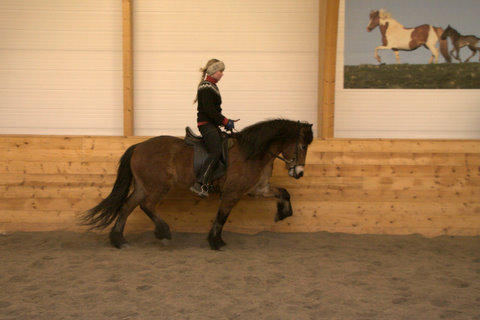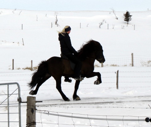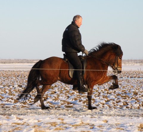 Hér koma nokkrar myndir af Frama frá Ketilsstöðum, hann verður fimm vetra í vor og er undan Sveini Hervari frá Þúfu og Framkvæmd frá Ketilsstöðum. Frami er mikill töltari en verið er að kanna þessa dagana hvort hann búi yfir skeiði lika, en það var ekki til staðar í fyrra. Hann á þrjú eldri systkini með 9,5 fyrir skeið, en Sveinn Hervar hefur nú gefið klárhesta að megninu til þannig að spennandi verður að sjá hvort hefur betur, Sveinn Hervar eða Framkvæmd.