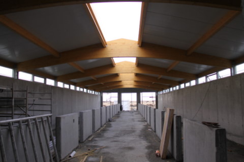 Nú er búið að setja sperrurnar á hesthúsið og óhætt að segja að framkvæmdir gangi vel. Við erum spennt og hlökkum til að taka nýju húsin í notkun. Svona lítur þetta út núna, en næst er að setja ýleiningarnar á þakið.