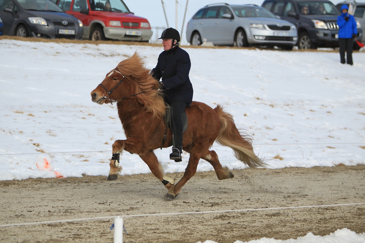 Bergur og Minning frá Ketilsstöðum sigruðu gæðingaskeiðið á Word Ranking móti Sleipnins sem haldið erum þessa helgi. Þau áttu stórgóða keppni, allt gekk eins og smurt og enga veikleika að sjá. Bergur er búinn að undirbúa Minningu vel, hann keppti á henni í meistaradeildinni í vetur en þá klikkaði önnur niðurhægingin og endaði hann í 9. sæti. Núna gekk allt upp og aðaleinkunn var 7,54. Minning er 11 vetra gömul og hlaut 9,5 fyrir skeið í kynbótadómi 5 vetra gömul. Hún er undan heiðursverðlalunahrossunum Framkvæmd frá Ketilsstöðum og Gusti frá Hóli. Undan Minningu er til þrjú tryppi,5, 4, og 3 vetra en síðan leyfðum við okkur að taka hana úr ræktun til að nota hana í keppni. Birti hér nokkrar myndir af Bergi og Minningu, man samt ekki alveg hver tók þær, mig minnir samt að það hafi verið Óðinn Örn Jóhannsson.