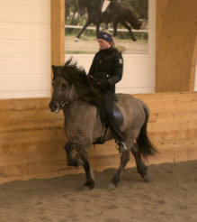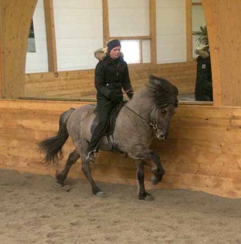 Vornum að fá sendar nokkrar myndir af afkvæmi Kraflars til að nota í sambandi við nýja fídusin sem við settum að heimasíðuna, þar sem hægt er að skoða afkvæmi stóðhestanna okkar. Mér finnst þessar myndir svo fallegar að mig langar að birta þær. Eldri hryssan heitir Grábrá, en hún er dóttir Bráar sem er hér í ræktum hjá okkur. Dóttir hennar heitir Ófeig frá Öst og er fædd og í eigu Christinu Bach Sörensen. Christina keypti Grábrá af okkur sem tryppi og flutti hana seinna út til Danmerkur fylfulla við Kraflari. Grábrá er búin að vera reiðhryssa Christinu, utan þess eð Fredrik Rydström tók hana til þjálfunnar í smá tíma og sýndi hana í kynbótadóm og hlaut hún 8,20 fyrir sköpulag, 7,54 fyrir hæfileika og samtals 7,80. Ég er búin að fylgjast með þeim Christinu og Grábrá á náskeiðum í nokkur ár og veit ég að Grábrá á mikið inni í hæfileikum. Nú er Grábrá í þjálfun hjá Trine Risvang,en stefnt ér á að sýna hana í kynbótadóm aftur í vor, og hef ég frétt að þjálfun gangi vel.