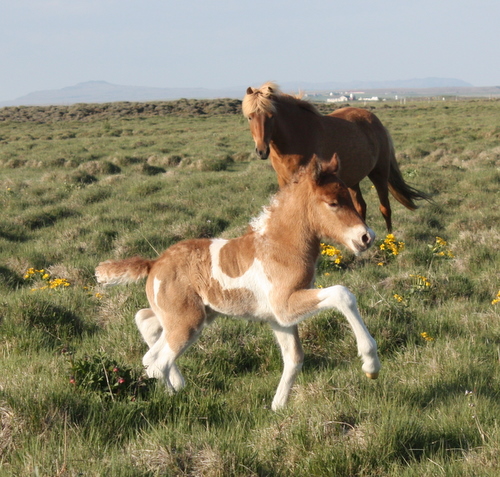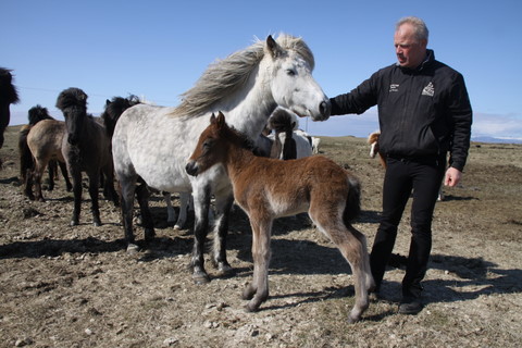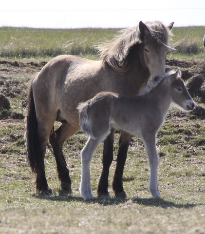 Í gær fæddist fyrsta folaldið hjá okkur, en það var hún Gráhildur sem átti jarpa hryssu. Faðirinn er Álfarinn frá Syðri Gegnishólum, hann er þriggja vetra og er albróðir Álfasteins frá Selfossi. Álfarinn fyljaði bara þessa einu hryssu í fyrra og var talið að mikil lyfjameðhöndlun móðurinnar meðan á fósturstigi stóð gæti haft áhrif á þroska hans. Nú er málið í vinnslu og eins og er litur þetta vel út og vonumst við eftir að geta haldið undir hann í sumar.