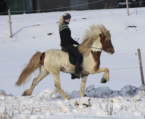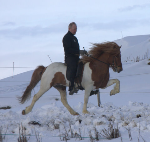 Hér koma nokkrar myndir af Frama frá Ketilsstöðum, hann verður fimm vetra í vor og er undan Sveini Hervari frá Þúfu og Framkvæmd frá Ketilsstöðum. Frami er mikill töltari en verið er að kanna þessa dagana hvort hann búi yfir skeiði lika, en það var ekki til staðar í fyrra. Hann á þrjú eldri systkini með 9,5 fyrir skeið, en Sveinn Hervar hefur nú gefið klárhesta að megninu til þannig að spennandi verður að sjá hvort hefur betur, Sveinn Hervar eða Framkvæmd.
